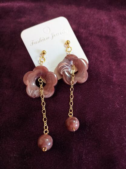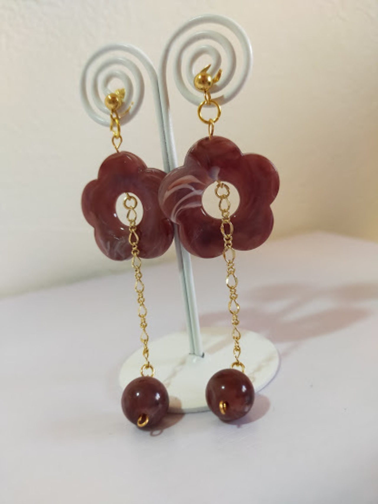 少し大振りの梅の花に揺れる丸玉をあしらったピアス。