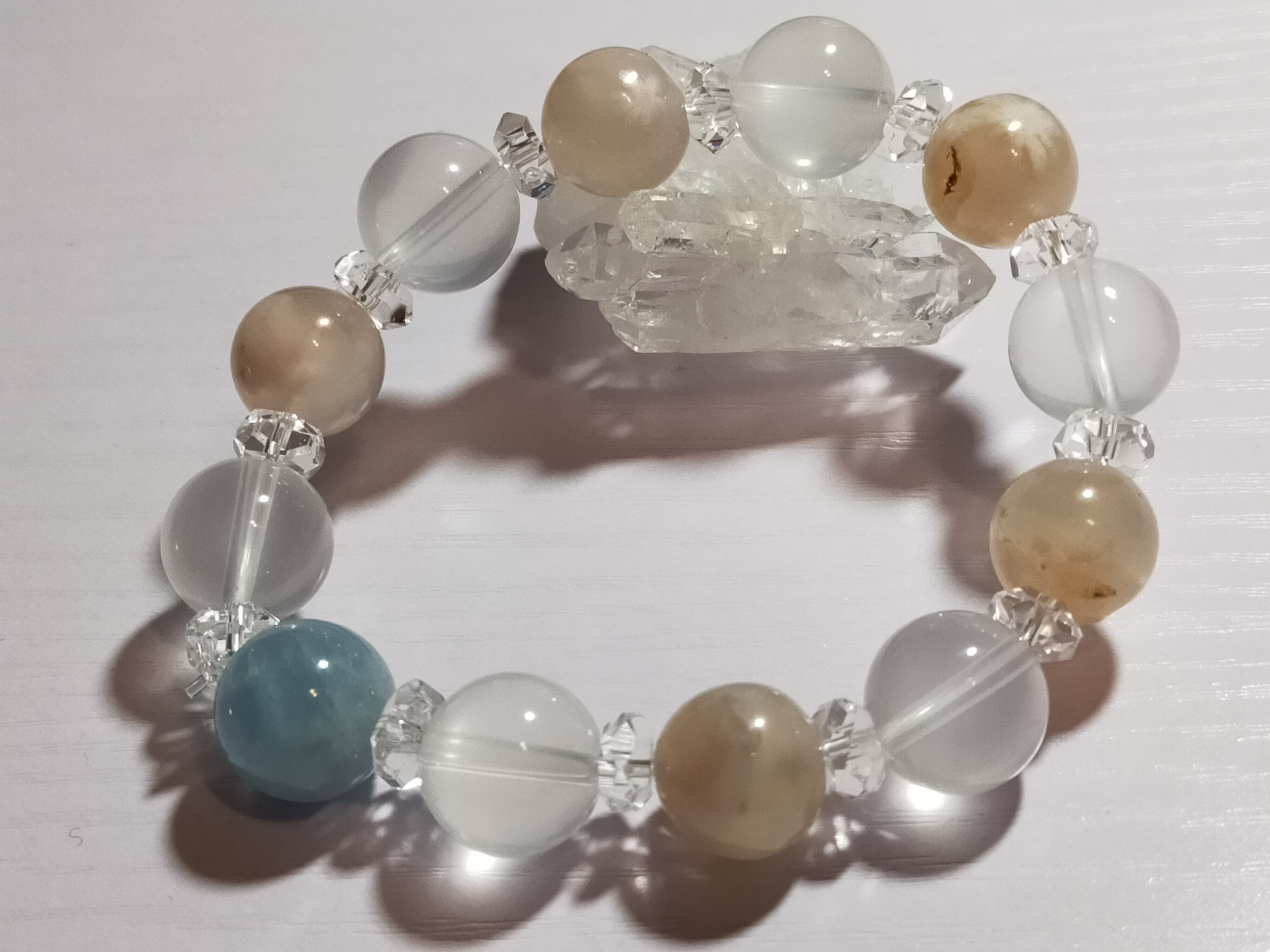 最近人気の桜メノウと青空のようなアクアマリンを使った春らしいブレスレットです。